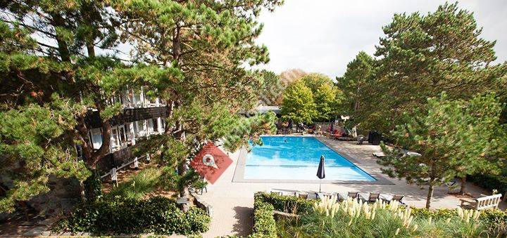 Gastvrij hotel dichtbij het strand, in Canadese Lodge stijl, heerlijke buiten zwembad (april - september), brasserie en vergaderzalen