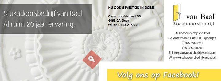 Stukadoorsbedrijf van Baal is gevestigd op industrieterrein "De Waterman 3" te Rijsbergen (ca. 10 km onder Breda)